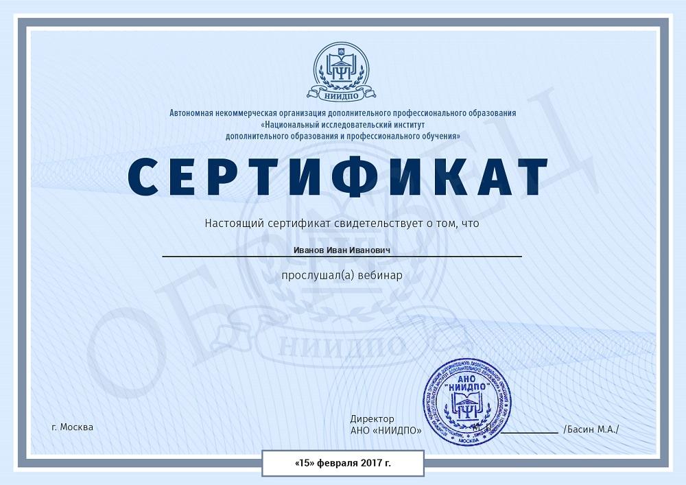 Дополнительно наши Слушатели могут получить сертификат за просмотр вебинаров