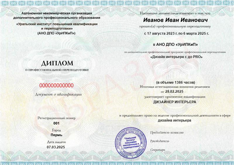 Да, дипломы и удостоверения оформляются в соответствии с действующим законодательством РФ. Документы печатаются на специальных бланках, заверяются печатью АНО ДПО «УрИПКиП».