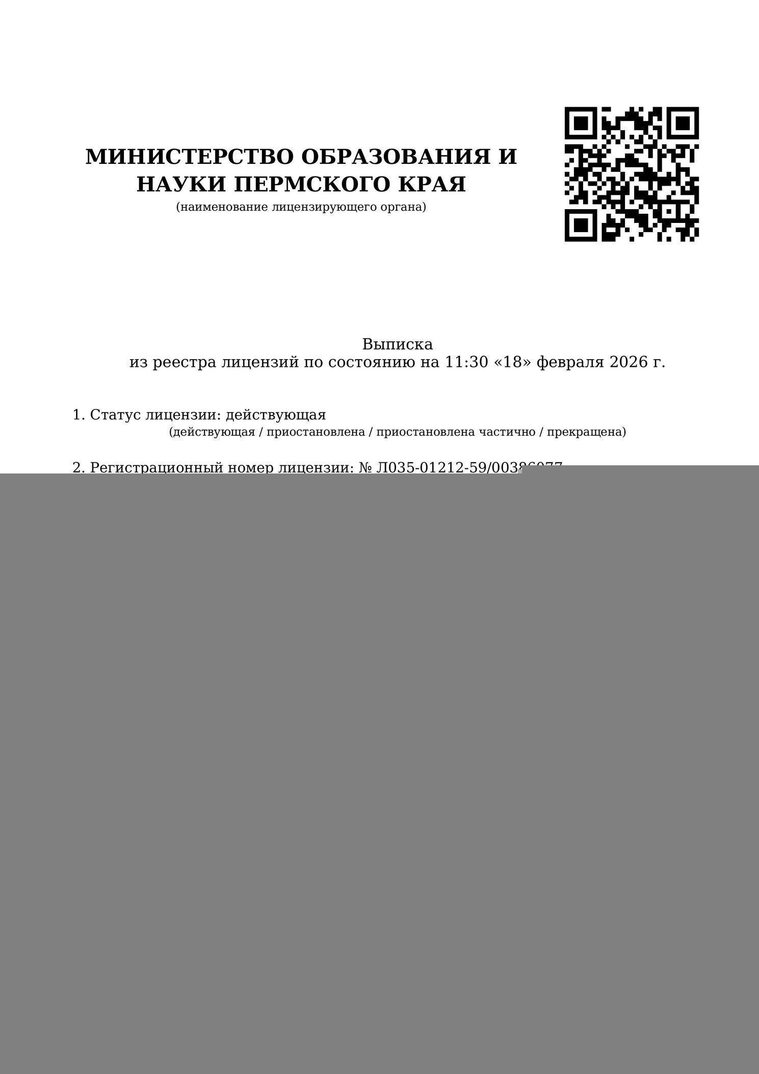 Регистрационный номер лицензии: № Л035-01212-59/00386077
