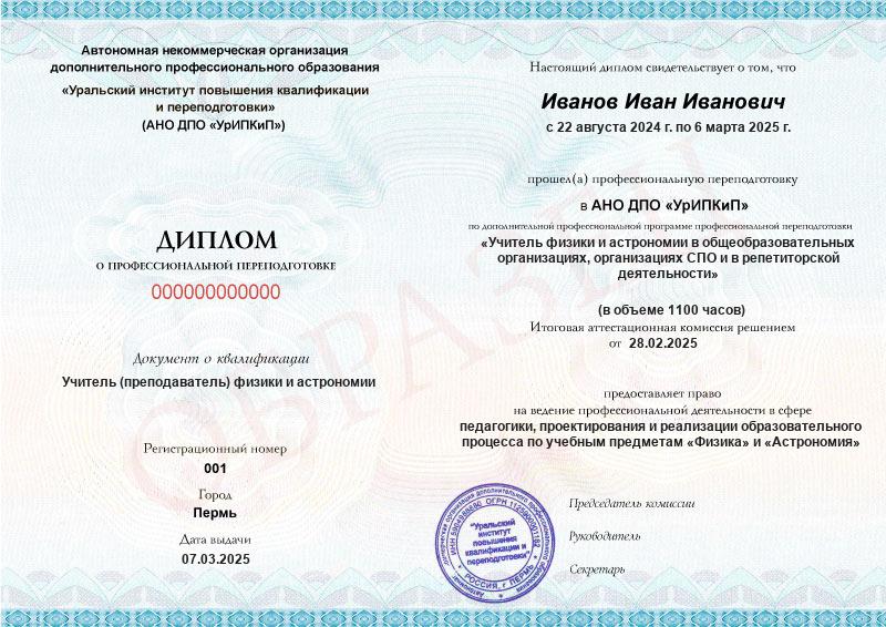 - Образец диплома о профессиональной переподготовке.